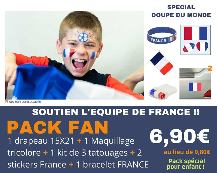 Chez sticker Foot , on soutien les bleus pour toutes les compétitions. Voici notre pack FAN tricolore afin de participer à la fête et les soutenir un max!