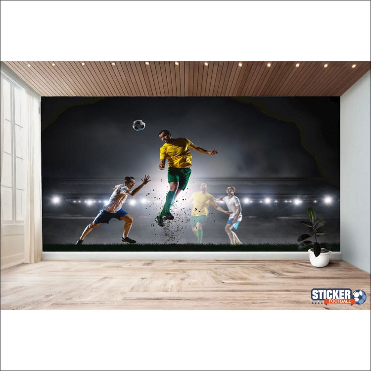 Totalement sur mesure, nous imprimons à vos mesures en ajoutant 10 cm en contour pour une finition parfaite de votre Papier peint joueur de foot