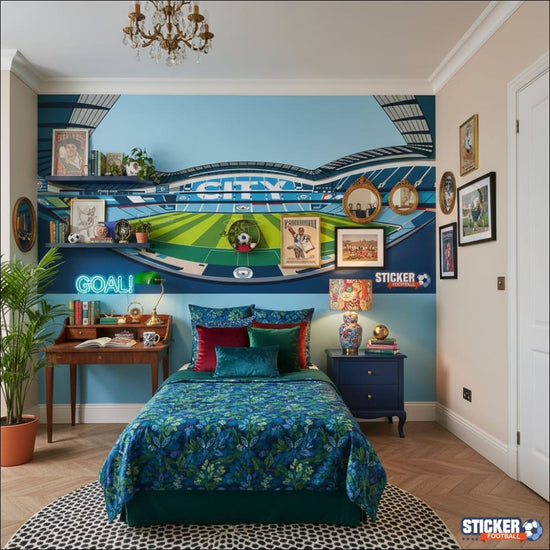 Transformez n'importe quelle pièce en un hommage vibrant au football avec cette fresque murale époustouflante. Conçue pour les passionnés du ballon rond et les inconditionnels de Manchester City, elle capture l'ambiance électrisante du terrain de jeu emblématique.